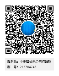 2.QQ群:应聘人员申请加入“中电建核电公司招聘群”,QQ群号:215704745,加群申请格式:毕业学校+专业+姓名。