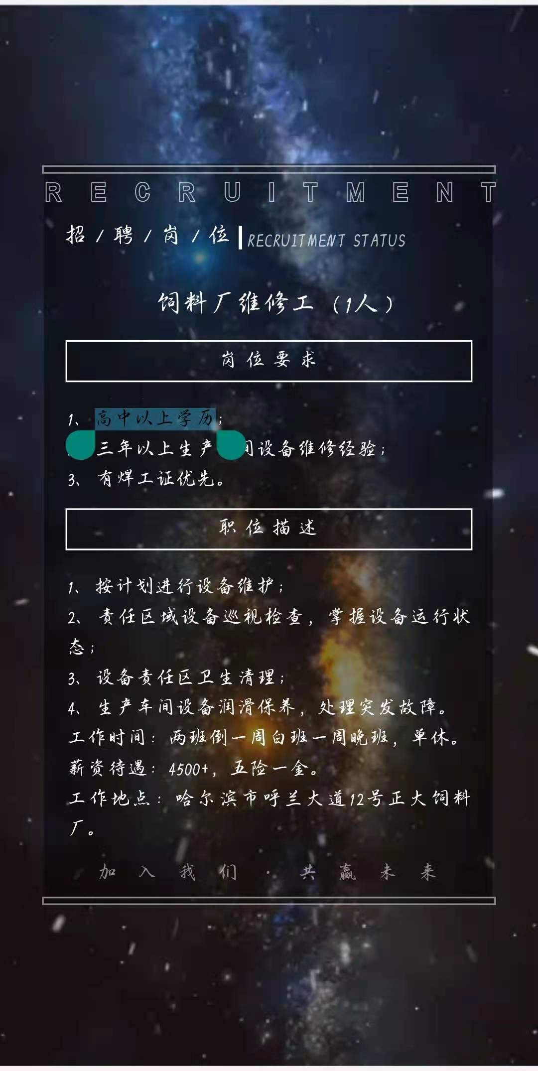 黑龙叫正大实业有限公司招聘