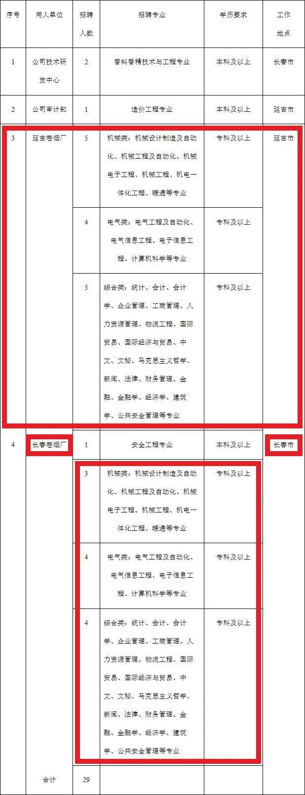 (1)生产操作类岗位吉林烟草工业有限责任公司延吉卷烟厂14人,吉林烟草工业有限责任公司长春卷烟厂12人。
