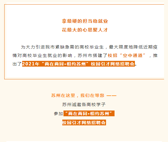 2021年“两在两同·相约苏州” 校园引才网络招聘会