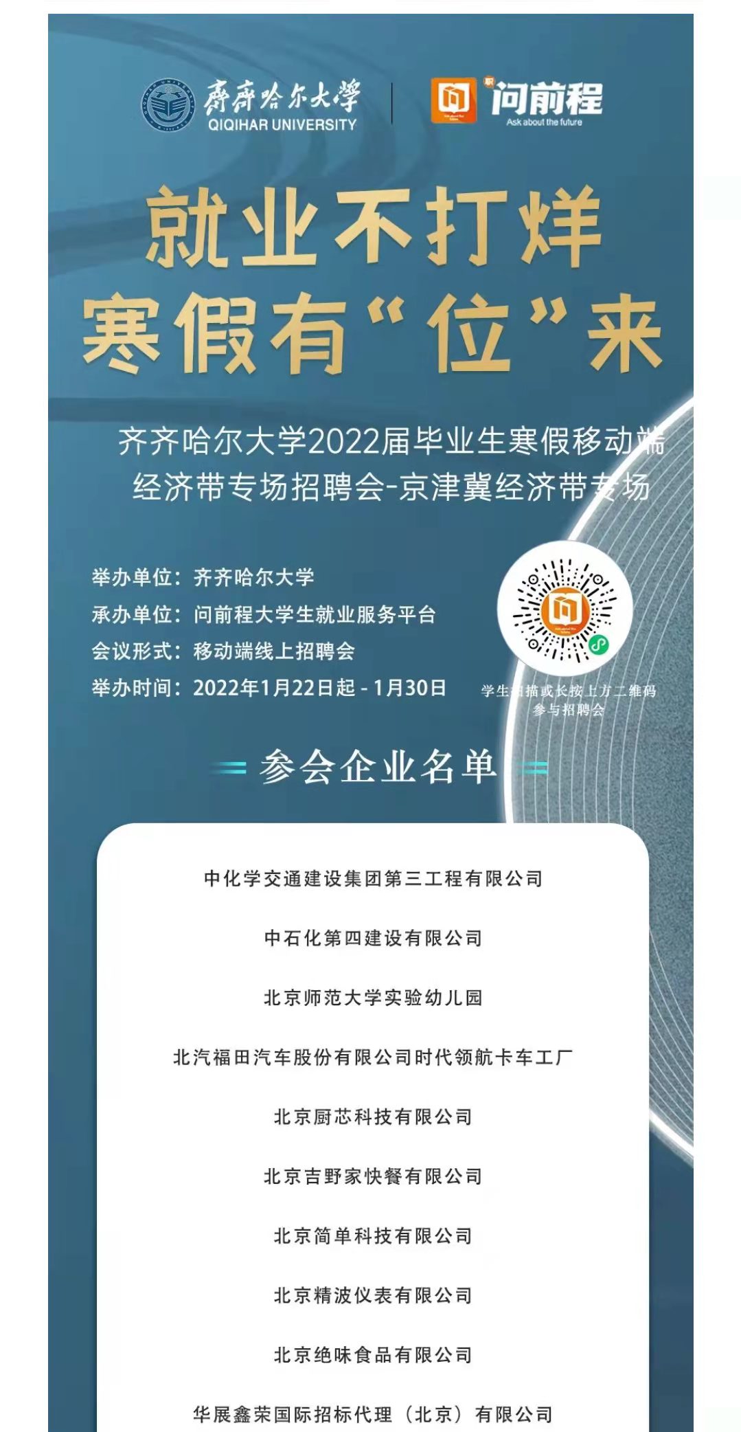 就业不打烊,寒假有“位”来-齐齐哈尔大学2022届毕业生寒假移动端经济带专场招聘会-京津冀经济带专场