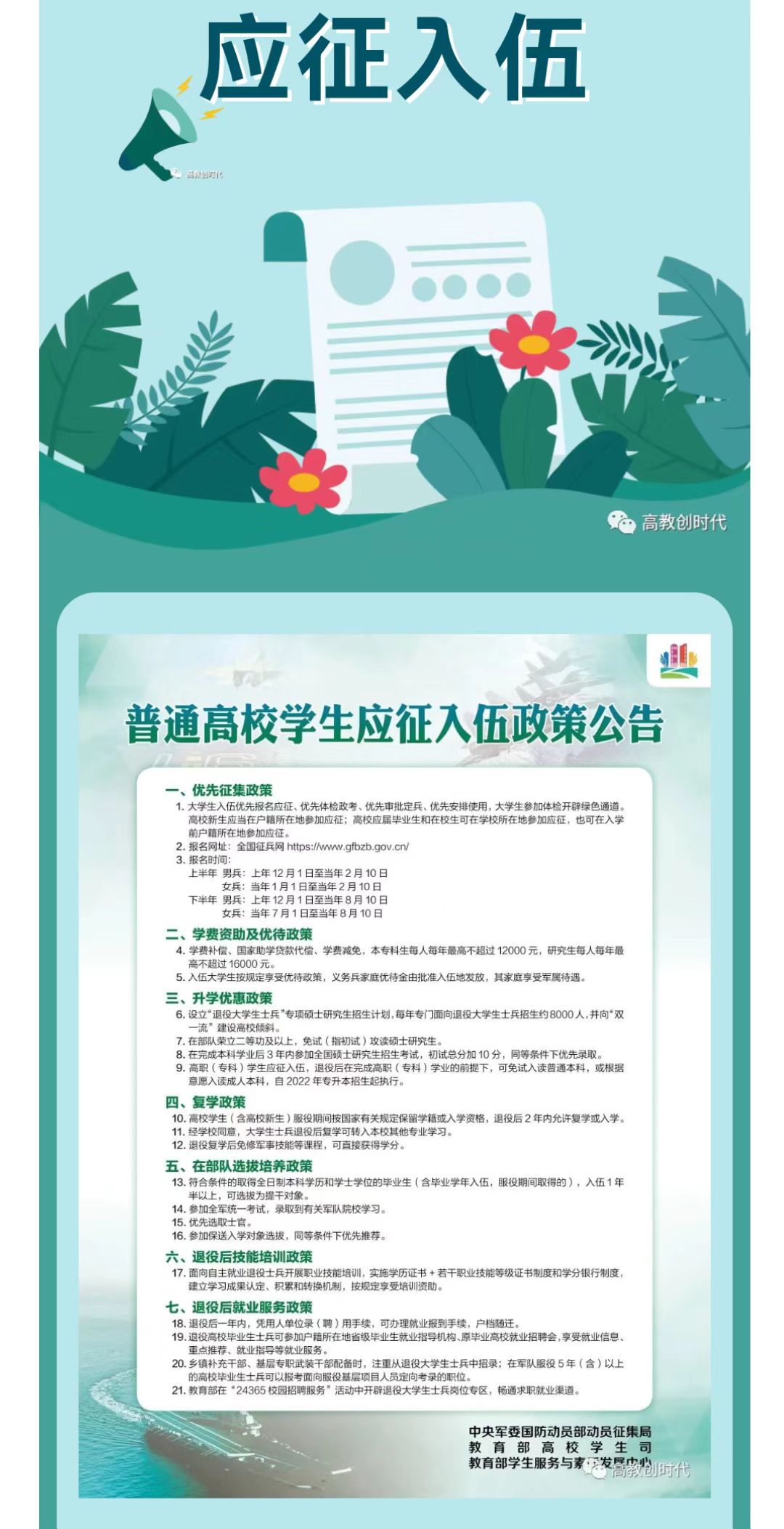 教育部高校毕业生就业创业政策宣传月来了!第三期:应征入伍篇
