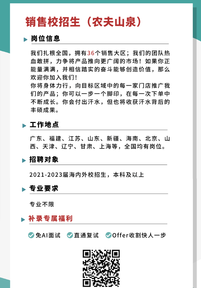 养生堂·农夫山泉·万泰生物2023春招补录启动