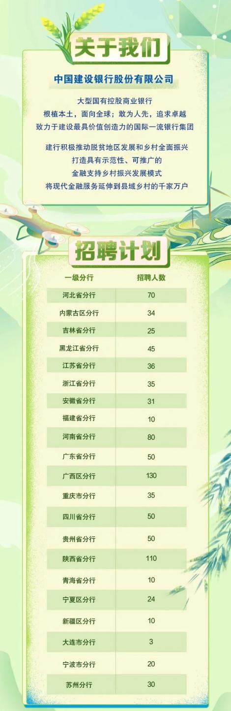 中国建设银行2023年度乡村振兴专项招聘正式启动