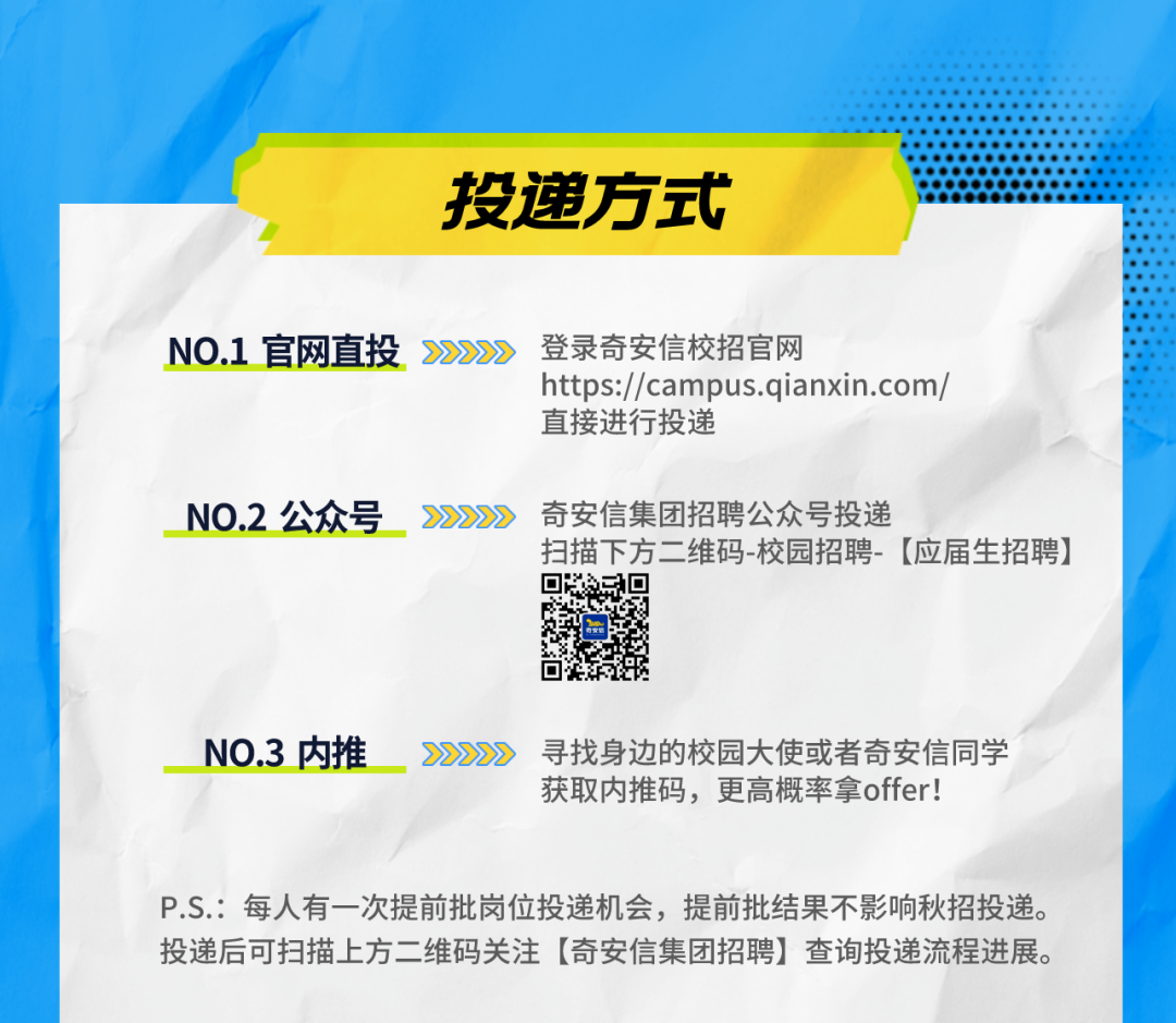 奇安信2024届安全类岗位提前批启动