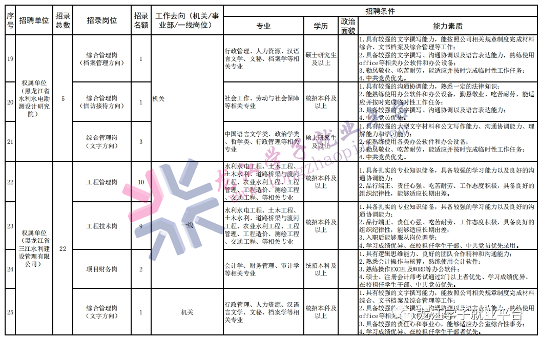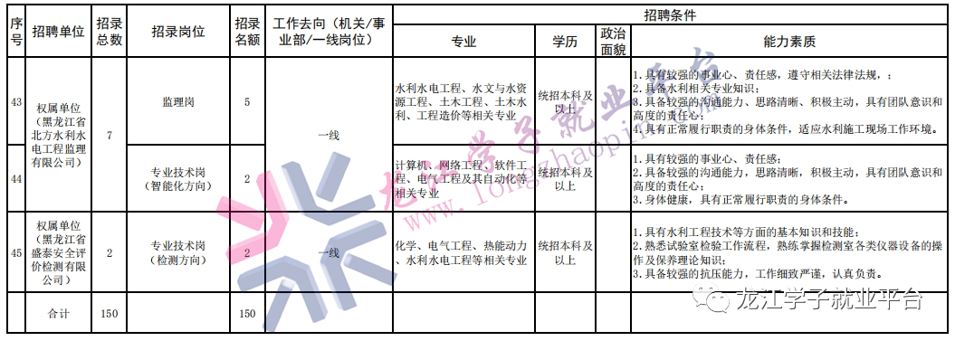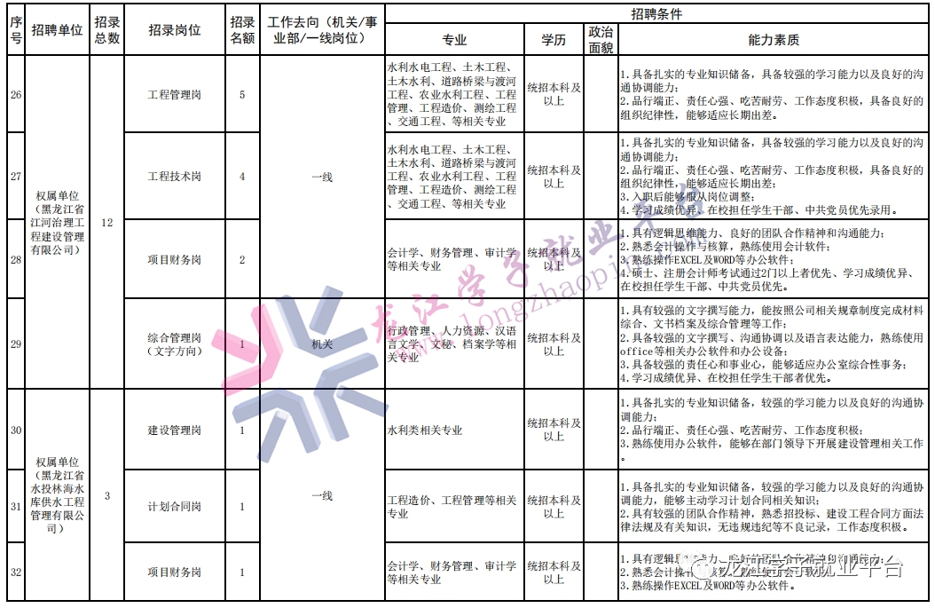 【150人·财务岗、行政岗、技术岗】黑龙江省水利投资集团有限公司招聘公告
