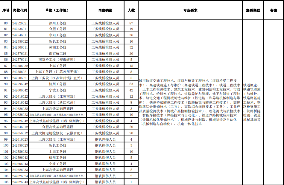 中国铁路上海局集团有限公司招聘2024年毕业生公告二(高等职业院校)