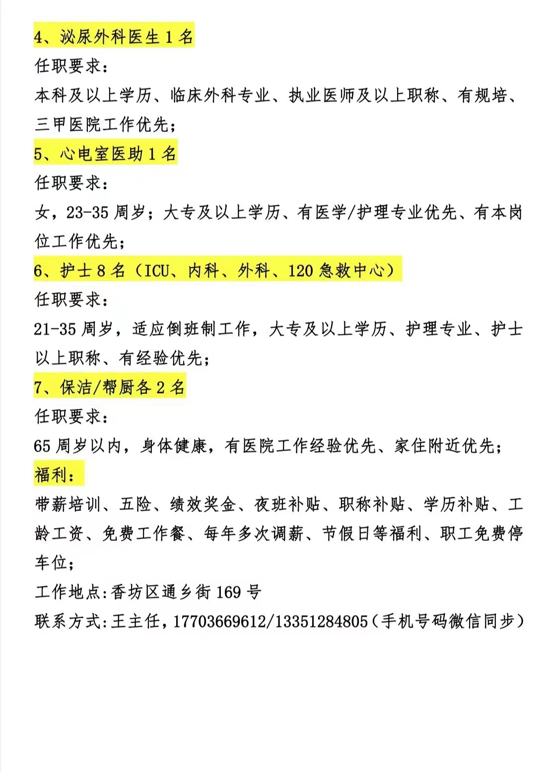 黑龙江远东心脑血管三级医院招聘