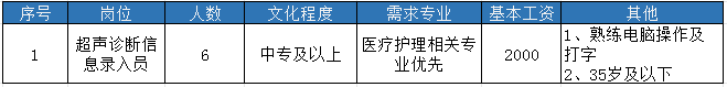 根据工作需要,大庆龙南医院拟面向社会招聘健康管理中心超声诊断信息录入员,有关事宜公告如下: