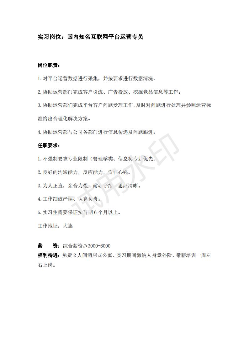 工作城市:辽宁省大连市
