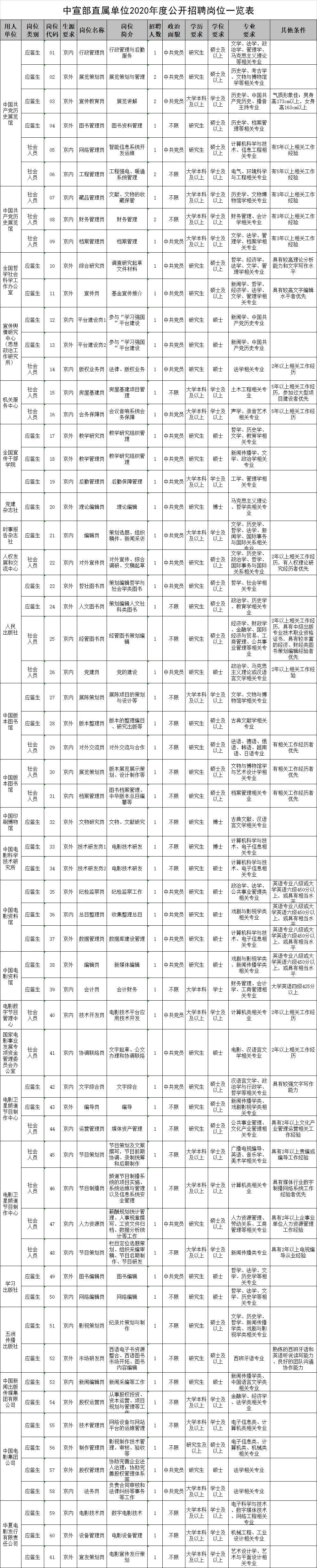 附:1.《中宣部直属单位2020年度公开招聘岗位一览表》
