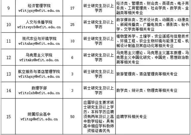 另外,潍坊理工学院现与青州市教体局签订合作共建潍坊理工学院附属综合高中协议,计划2020年9月1日完成建设并投入使用。附属高中此次计划招考各科老师共计50人。各岗位应聘条件及要求详见《教师招聘岗位汇总表》,有意应聘者通过电子邮件的方式报名,应聘者可登录学校网站下载并填写《潍坊理工学院教职工应聘简历》,邮件标题格式“应聘岗位+姓名+毕业学校+学历学位”,简历发至二级学院邮箱,邮箱地址详见教师招聘岗位汇总表》。
