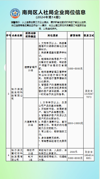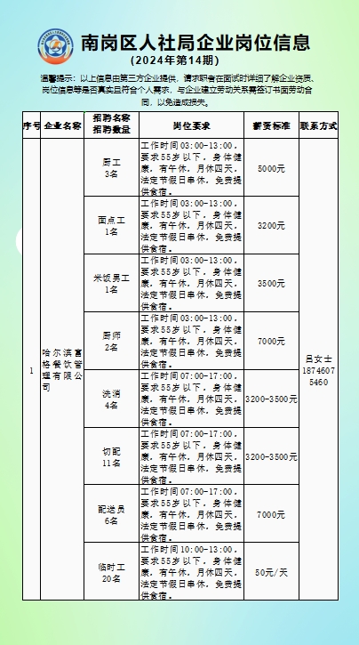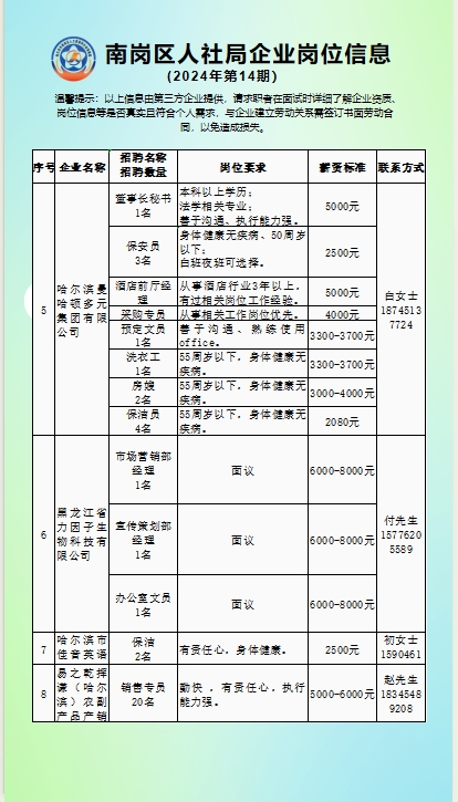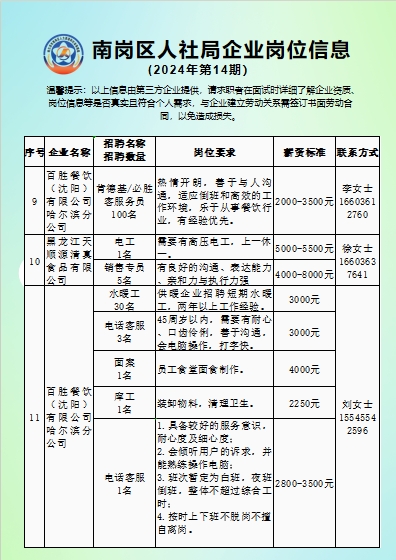南岗区人社局企业岗位信息