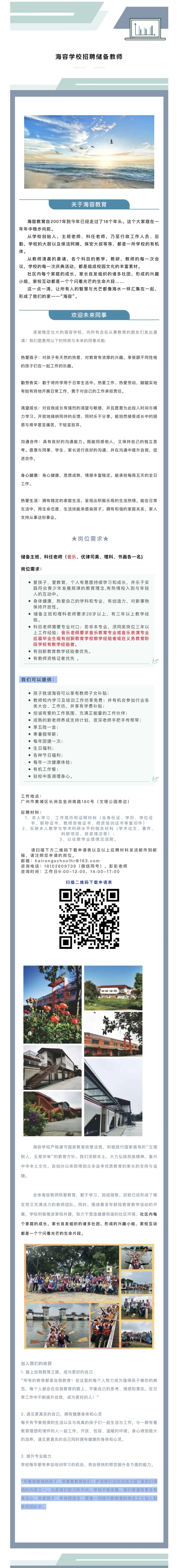 广东省广州市海容学校招聘 | 音乐教师