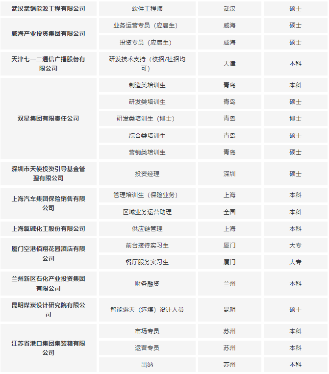 工作城市:北京市,天津市,山东省青岛市,湖北省武汉市,广东省广州市