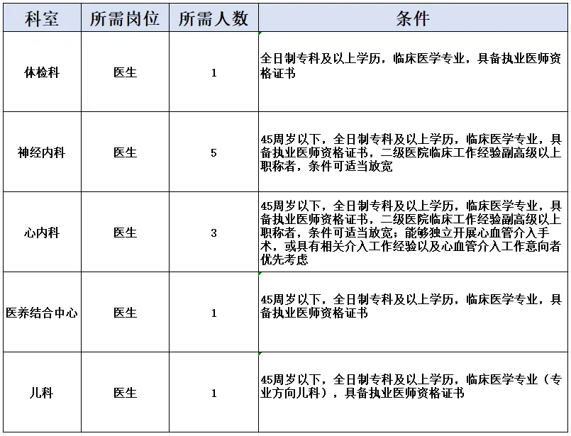 4、热爱医疗工作,责任心强,善于沟通,具有完成岗位工作的基本素质;