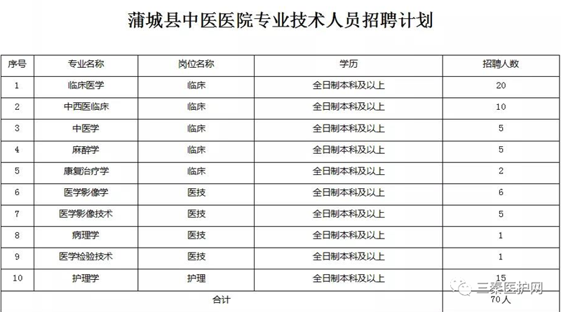 蒲城县中医医院是一所集医疗应急、预防保健、康复养生、教学科研为一体的现代化二级甲等中医医院,现设置床位600张,开设25个临床科室,9个医技科室,拥有市级以上重点专病专科10个。因医院整体搬迁,为加强人才储备和梯队建设,更好地服务群众,现面向社会公开招聘卫生专业技术人员,具体内容如下: