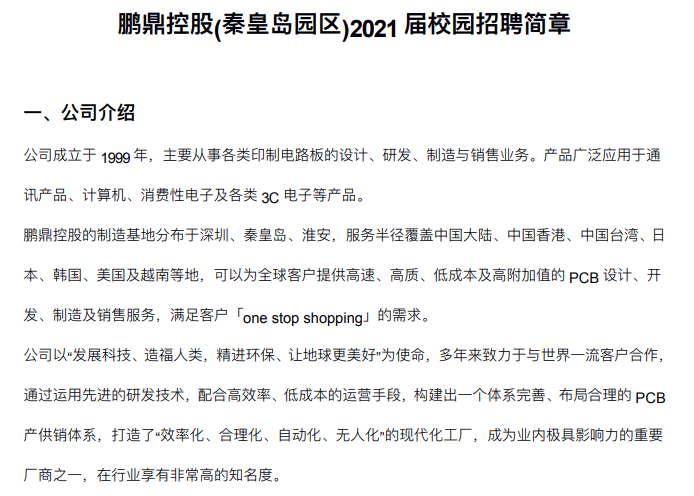 专场招聘会【材料/化?类、物理/光学类、电?/电?类、机电/机械类、?动化研发、计算机/数学类、?业?程/?政管理】鹏鼎控股(秦皇岛园区)2021 届校园招聘会