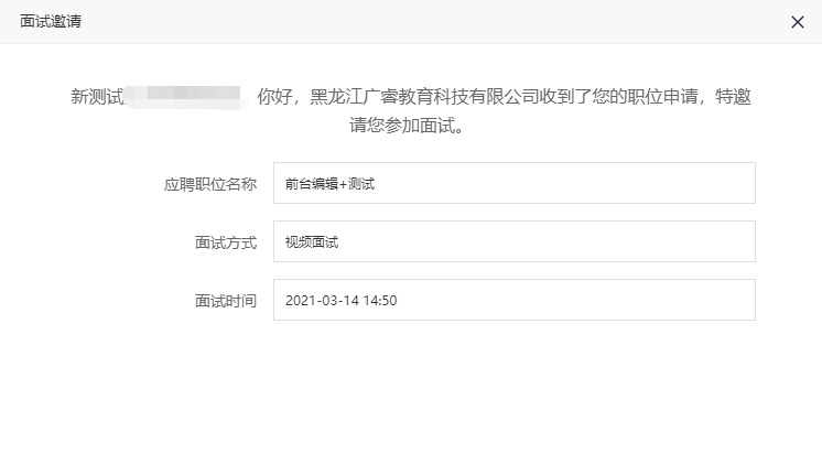 点击【查看面试邀请】查看详情,如下图所示: