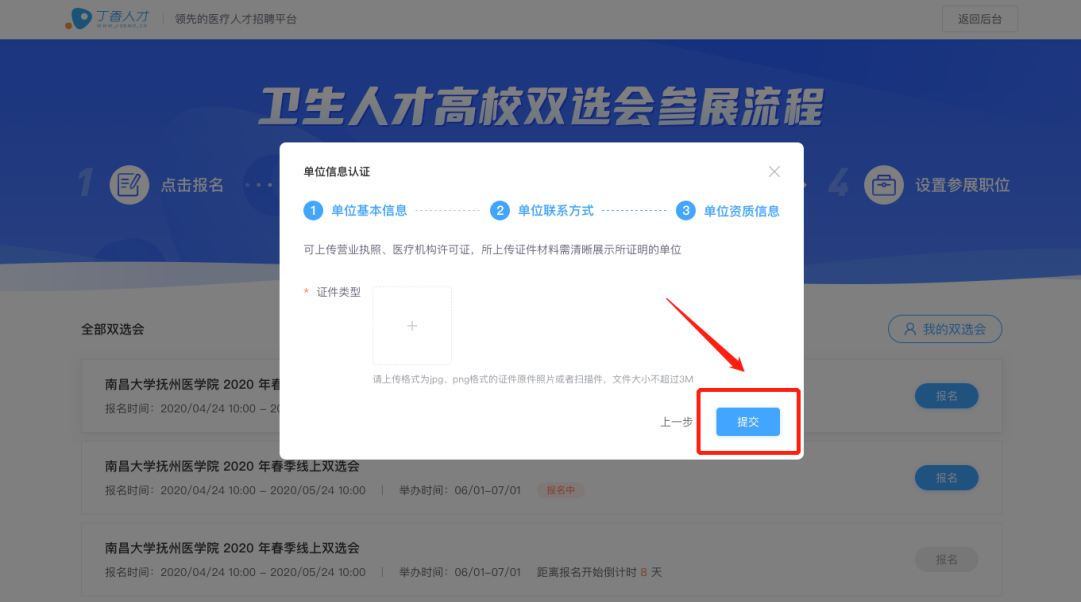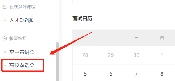 3.点击企业管理后台左侧“高校双选会”,选择需要报名的高校招聘会场次进行报名(新注册用户自动进入招聘会报名页面)