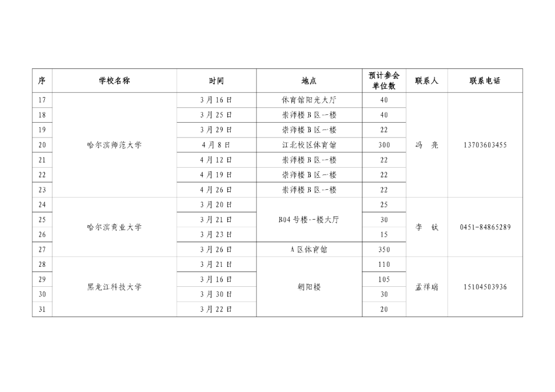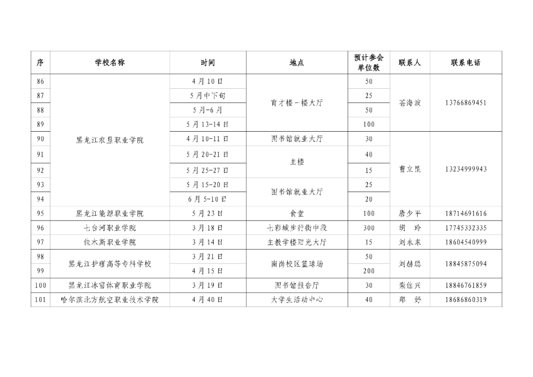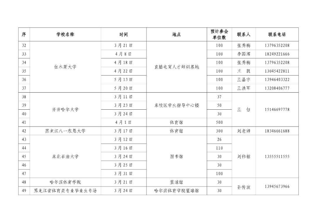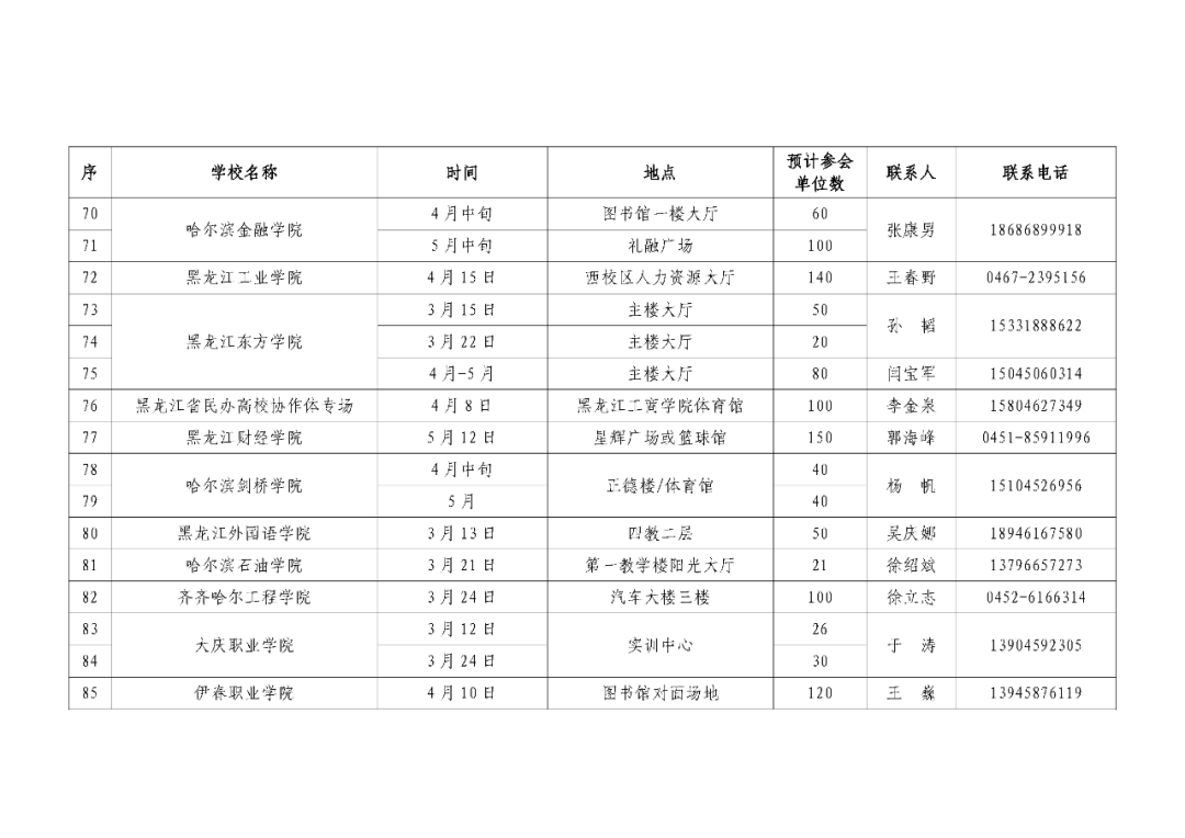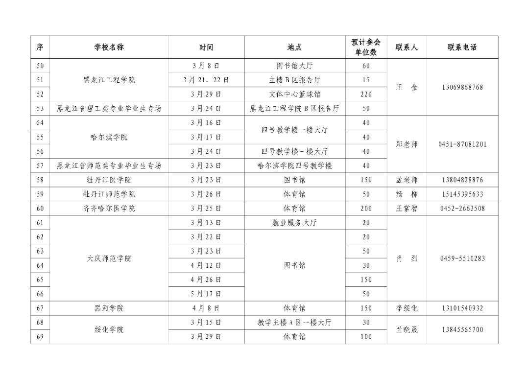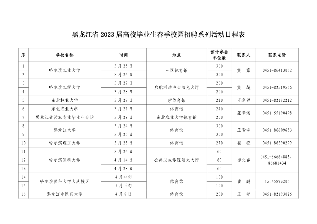 黑龙江省2023届高校高校毕业生春季校园招聘系列活动日程表