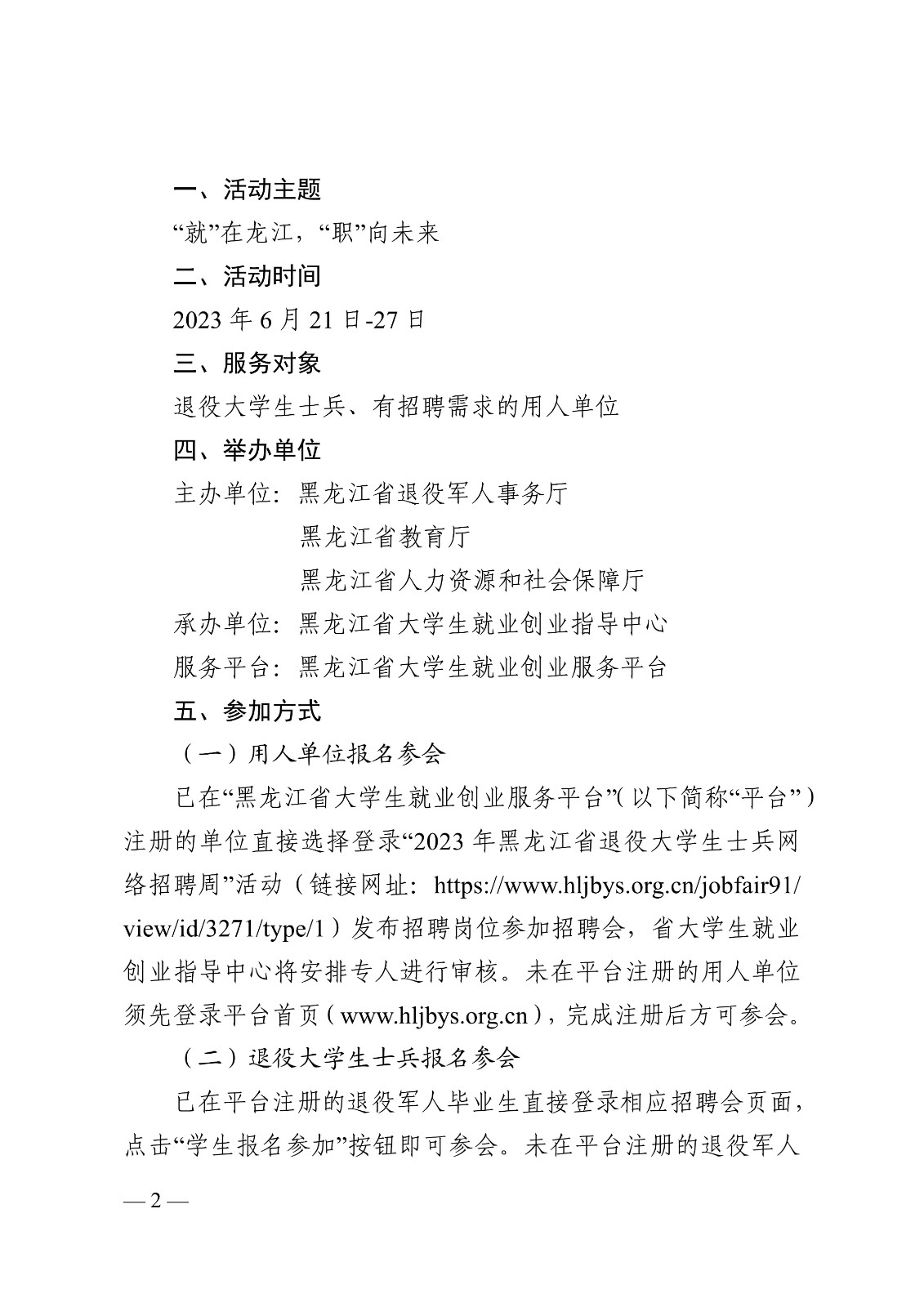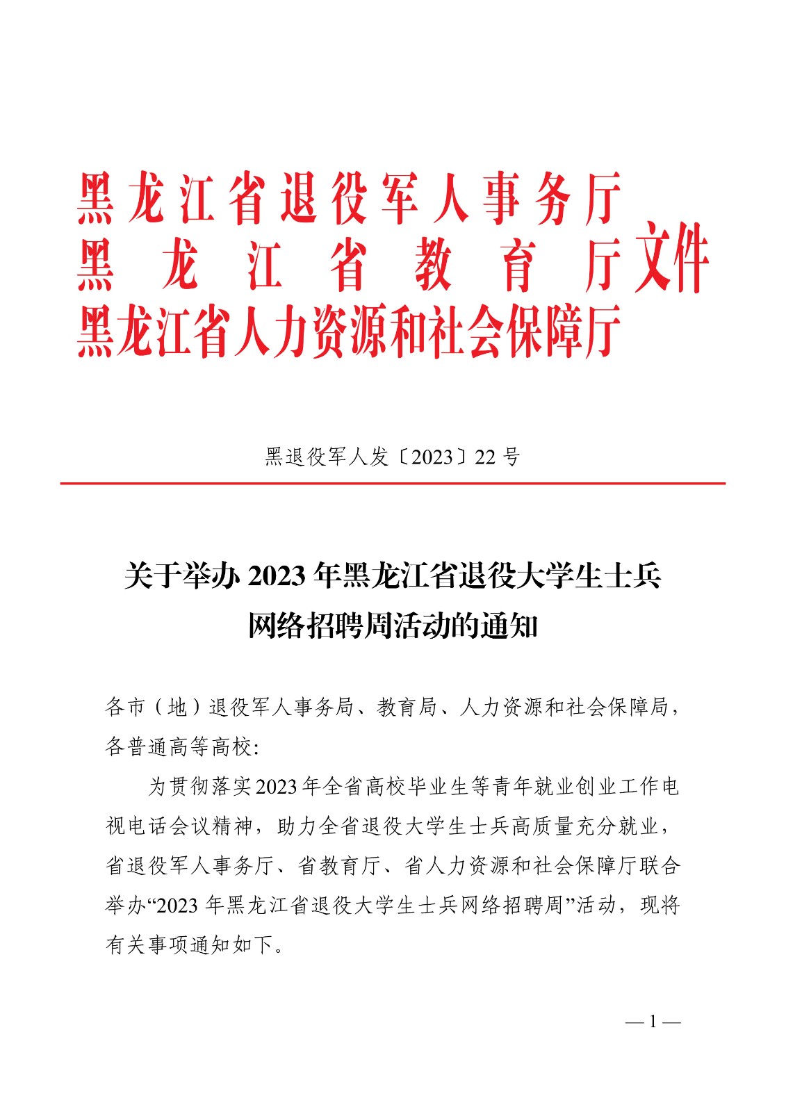 关于举办 2023 年黑龙江省退役大学生士兵网络招聘周活动的通知