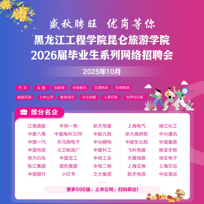 黑龙江工程学院昆仑旅游学院2026届毕业生10月专场网络招聘会