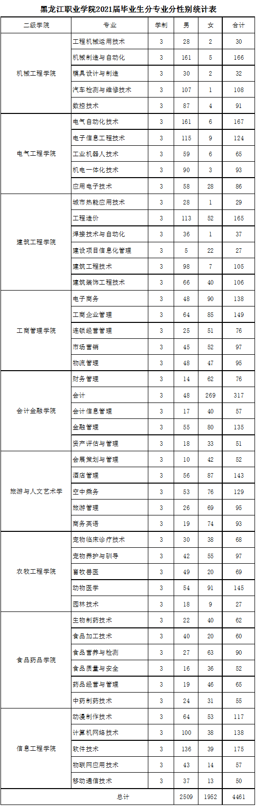 附件:2021届毕业生分专业分性别统计表