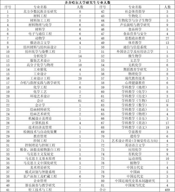 专业  | 人数  | 专业  | 人数  | 专业  | 人数  |