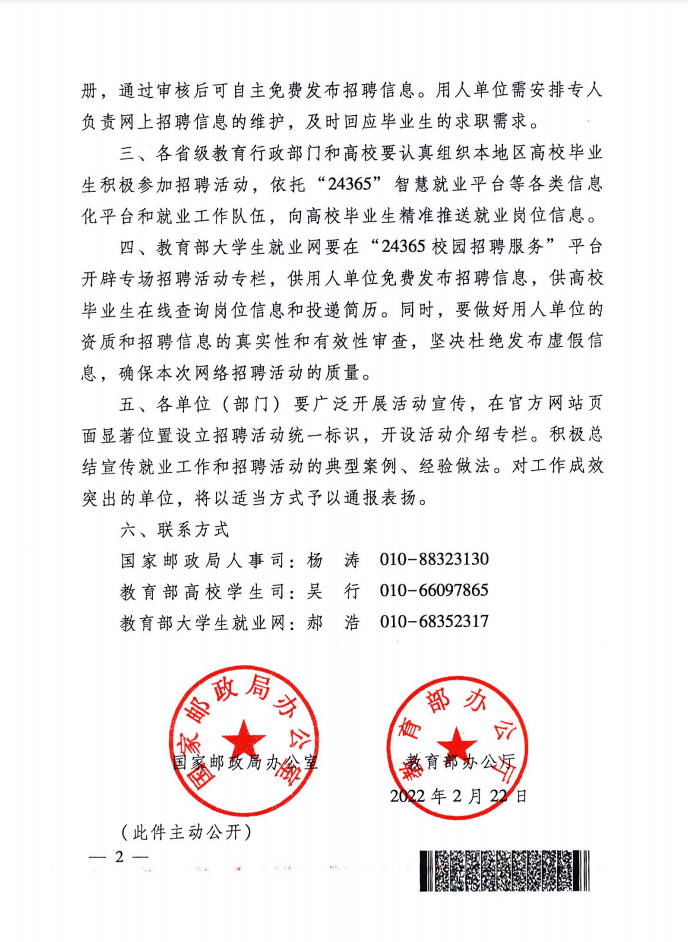 国家邮政局办公室 教育部办公厅关于开展2022年邮政快递业面向高校毕业生网络招聘活动的通知