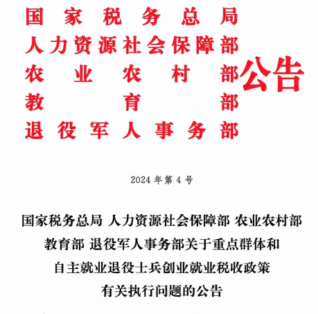 国家税务总局、人力资源社会保障部、农业农村部、教育部、退役军人事务部关于重点群体和自主就业退役士兵创业就业税收政策有关执行问题的公告