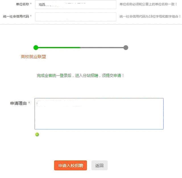 1.企业资质审核通过后,首先需要选择入驻高校联盟的学校名称,在搜索框内输入“齐齐哈尔高等师范专科学校”,然后点击搜索;然后点击“申请入住”。待我校审核通过后即可自行发布职位招聘信息。