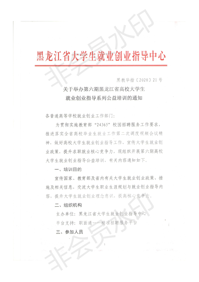 关于开展第六期黑龙江省高校就业指导公益培训通知