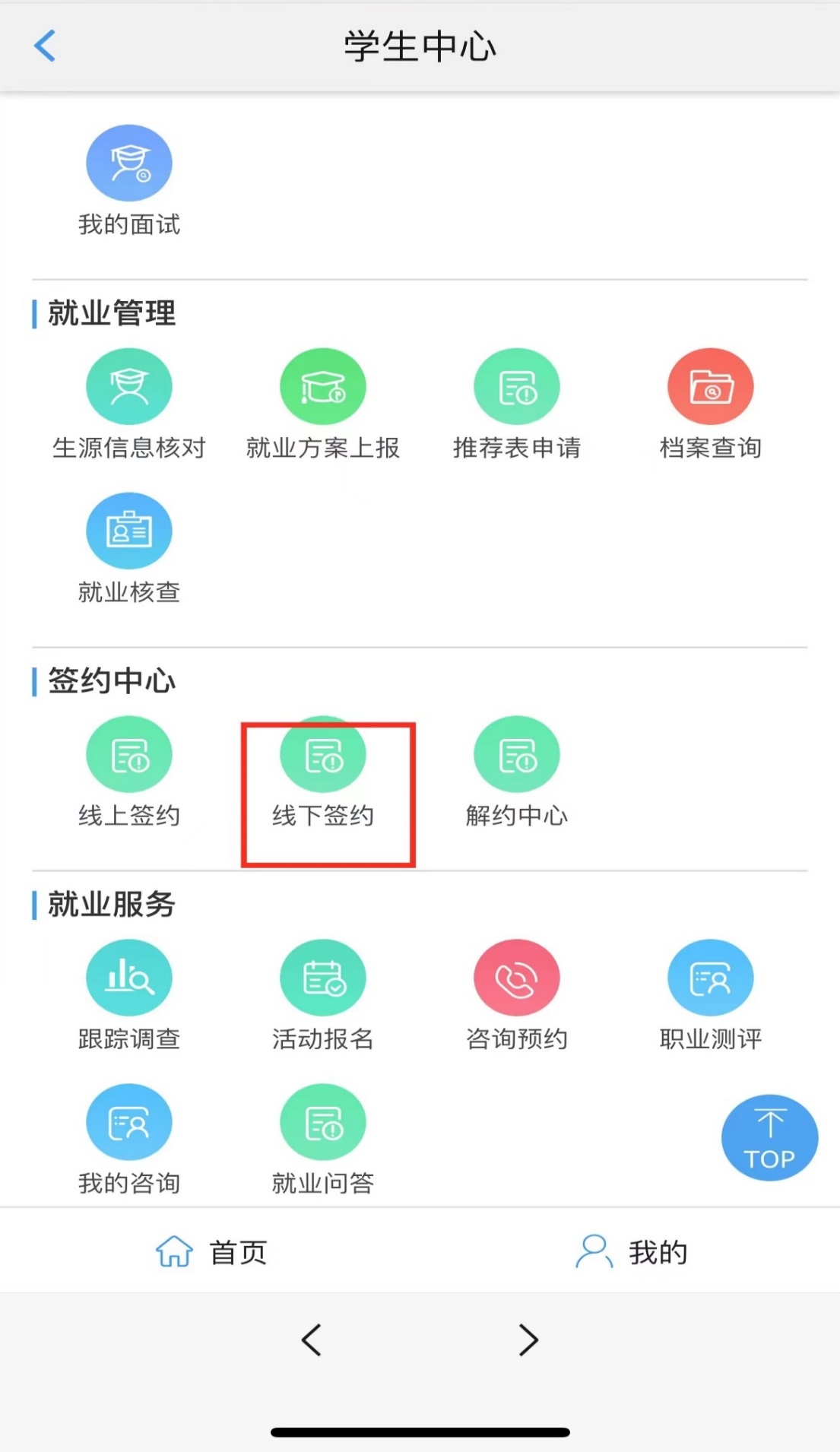 登录哈幼专就业服务平台微信端---主页---我的---输入账号密码----进入签约中心---线上签约---查看邀请函,如下图: