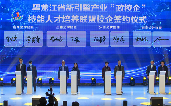 启动仪式上,黑龙江技师学院、哈尔滨技师学院、佳木斯职教集团、黑龙江省高级技工学校作为联盟理事长院校与联盟企业签署了合作协议,将在助力新引擎产业技能人才培养方面开展深度合作,助推龙江经济发展。