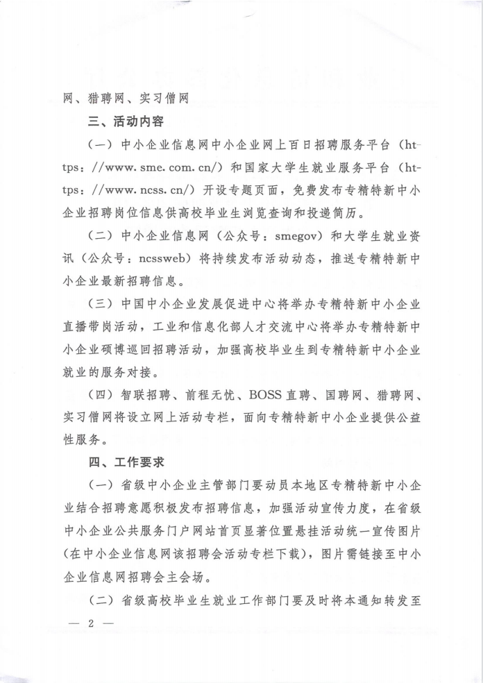 工业和信息化部办公厅 教育部办公厅关于举办专精特新中小企业面向2023届高校毕业生网上招聘活动的通知