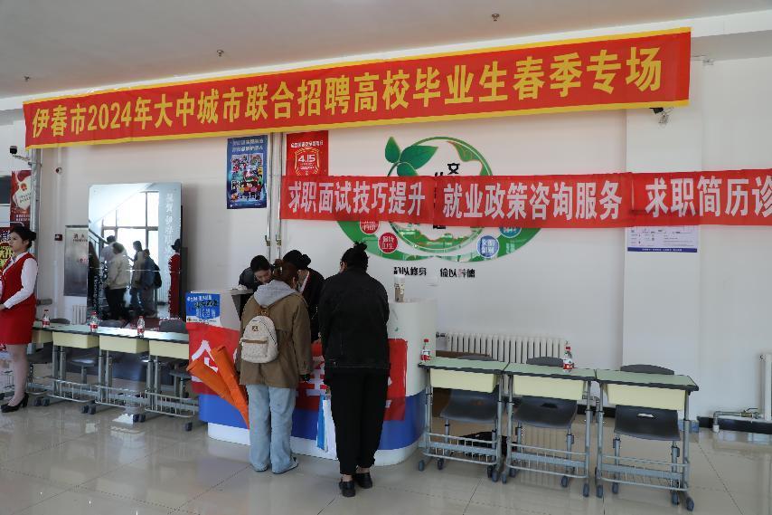 就业在龙江”2024年春季校园双选会在伊春职业学院综合服务中心举办。