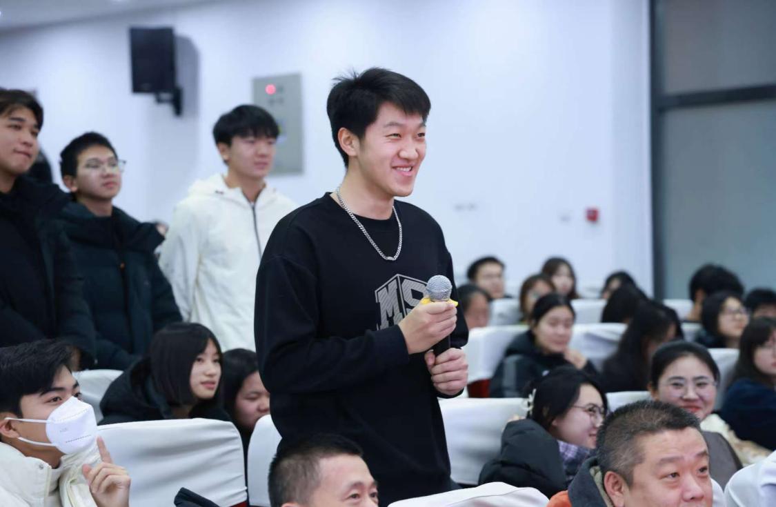 讲座现场中,学生与主讲嘉宾积极互动,主动参与话题讨论,探讨职业能力、职场心得,进一步提升了自我职业认知。