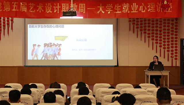 三场系列讲座分别是孙大力教授的“艺术认知水平在设计教育中的重要作用”;葛霖老师的“大学生求职心理探析”;樊芳老师的“大学生职业生涯规划设计”。