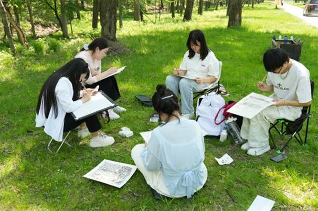 在阿城区连绵起伏的群山中,玉泉狩猎场犹如一颗镶嵌于金源文化带上的生态与人文明珠。师生们穿行于茂密的次生林间,脚步轻缓,敏锐的目光捕捉着跃动的生命韵律。写生本上,快速记录下动物灵动的姿态、植物丰富的形态与林间变幻的光影。环境设计专业的学生则分析着地形、水源与植被如何共同构建了这片生物多样性天堂的空间逻辑,思考未来生态景观设计如何借鉴这种“野性”而和谐的自然秩序。视觉传达专业的师生屏息凝神,细致拍摄、描摹着器物上独特的纹饰、造型与色彩搭配。这些凝聚着智慧与美感的“文化基因”,将成为未来他们创作具有地域根性文创产品与艺术作品的灵感宝库。