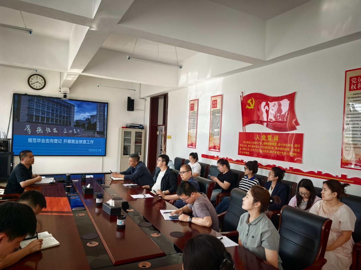 为深入学习贯彻习近平总书记关于高校毕业生就业工作的重要指示批示精神,贯彻党中央、国务院关于高校毕业生就业创业工作决策部署,全面落实省委、省政府和教育部近期有关工作要求,抢抓关键冲刺期,促进毕业生高质量充分就业,6月17日,伊春职业学院召开第五次就业工作推进会暨就业数据监测专题会议。招生就业处处长王增伟、各二级学院党支部副书记、毕业班辅导员、招生就业处相关工作人员参加会议。
