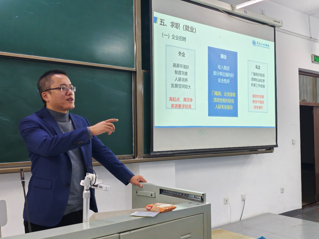1015日下午,我校商学院会计系专任教师张鹏在松北校区一号教学楼341开展了以“求职,你准备好了吗”为主题的讲座。