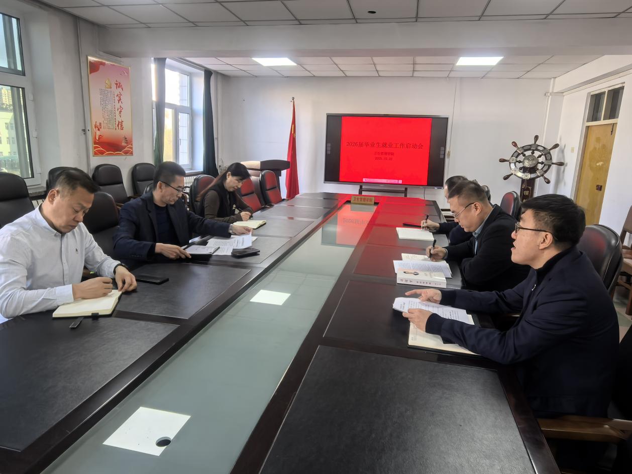 为深入贯彻国家就业优先战略,全面落实学校关于2026届毕业生就业工作的部署要求,10月22日,学院在三楼会议室召开2026届毕业生就业工作启动会,党委书记范秀坤、院长师东菊、副书记张久涛、副院长汪海波、卢国强参加本次会议,会议由副处级辅导员刘磊主持。