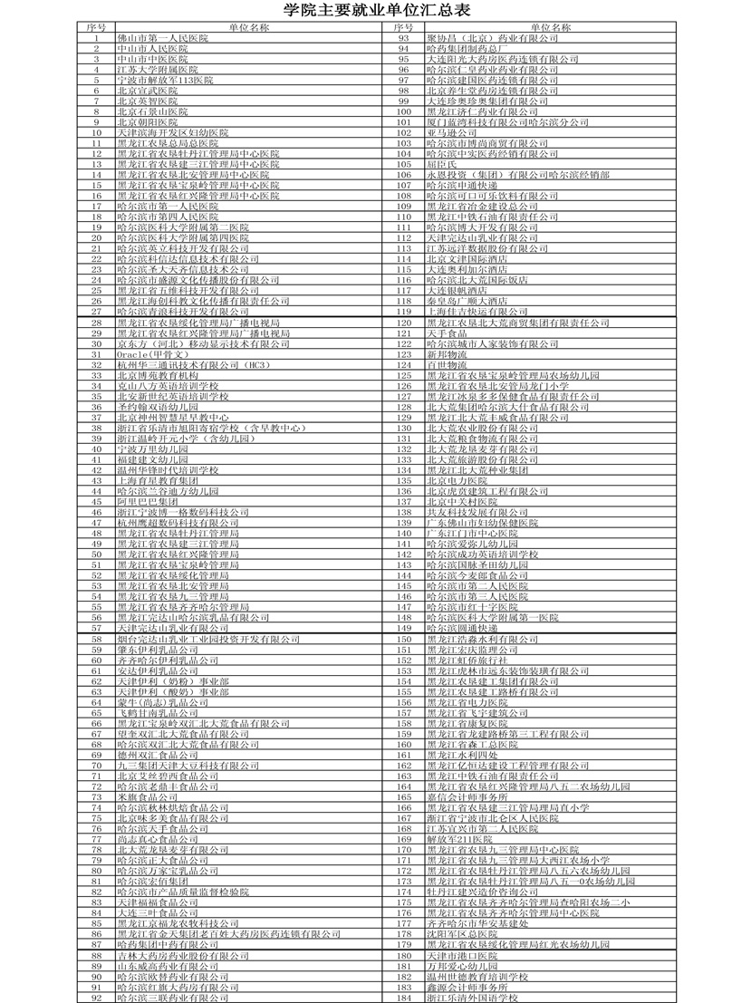 黑龙江农垦职业学院部分就业基地(排名不分先后)
